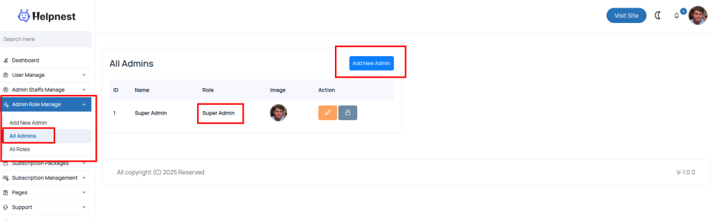 All Admin Role You can manage all admin roles easily,” Admin Role Manage > All Admins”. Doc navigation← Manage Role and Permission Was this article helpful to you? No Yes How can we help? Name Email Subject Message