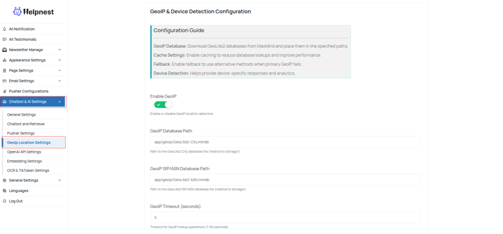 GeoIP & Device Detection Settings This page allows the admin to configure GeoIP location and device detection settings. GeoIP & Device Detection Settings Page Was this article helpful to you? No Yes How can we help? Name Email Subject Message