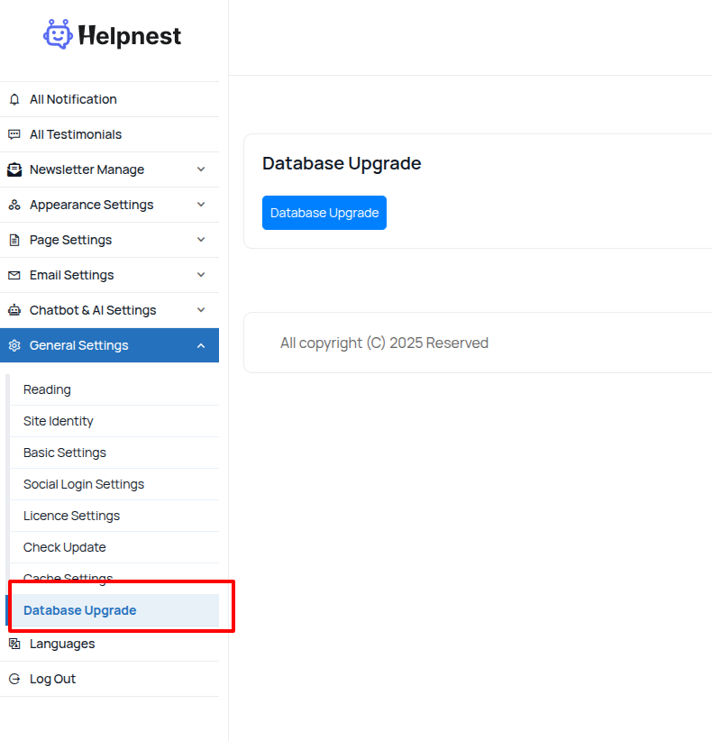Database Upgrade this settings use your site Database Upgrade.”. “General settings >Database Upgrade” Doc navigation← Cache settings Was this article helpful to you? No Yes How can we help? Name Email Subject Message