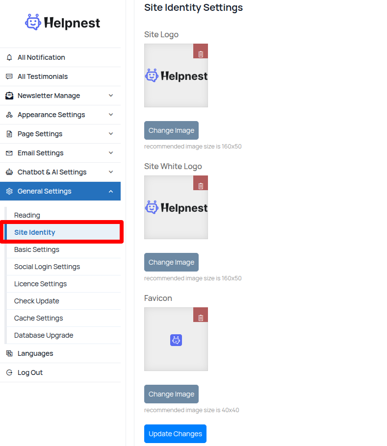- Site Logo: upload your own logo for the website