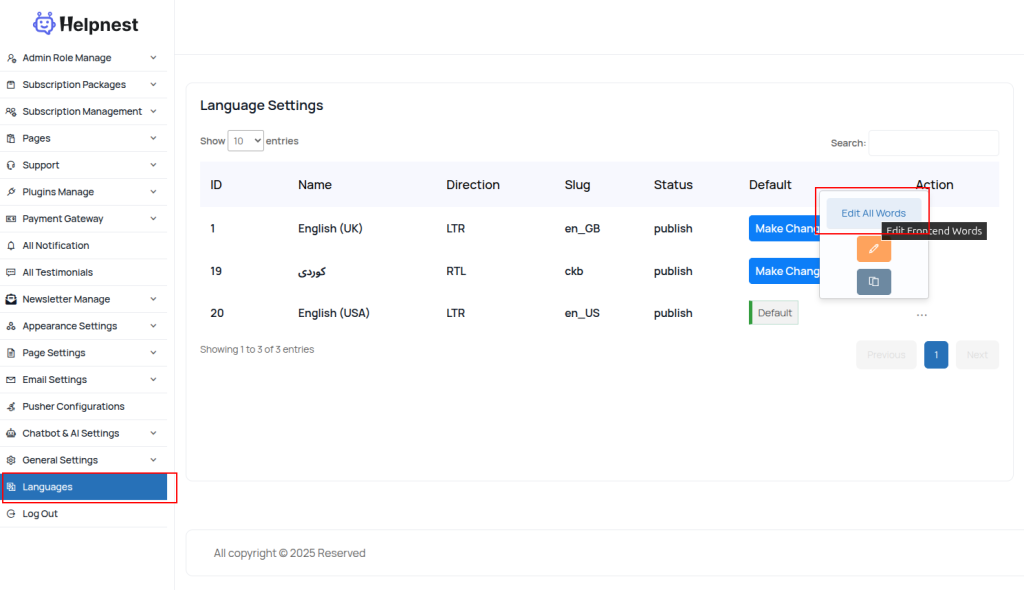 this cms has option to add missing translate string to admin panel words or frontend words.