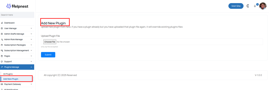 This Listing platform has an advanced Plugin Manage option. Admin can install and manage external plugins in Prohandy. To use this feature go to “Plugin Manager > Add New Plugin”