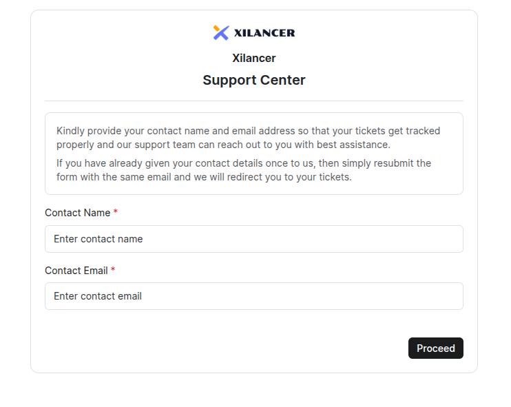 A hosted link is available for users and visitors to create and manage tickets using their name and email. This ensures that users can track their tickets without logging into the admin panel.